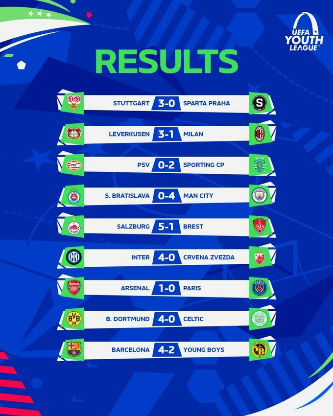 - 01.10. 13:30. Штутгарт U19 – Спарта Прага U19 – 3:0