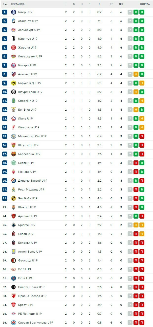 Лідирують у турнірі Інтер, Аталанта, РБ Зальцбург, Ювентус, Жирона, Байєр, Баварія (по 6 очок).