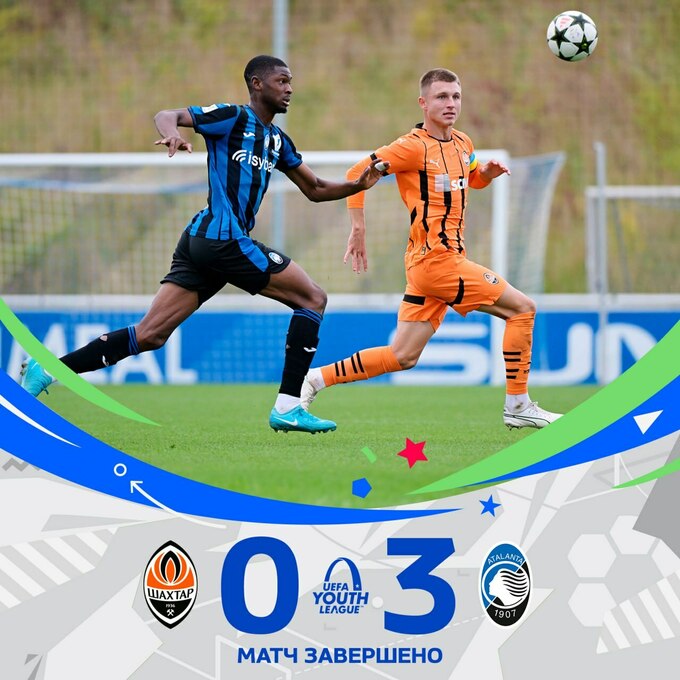 15:00. Шахтар U-19 (Україна) – Аталанта U-19 (Італія) – 0:3