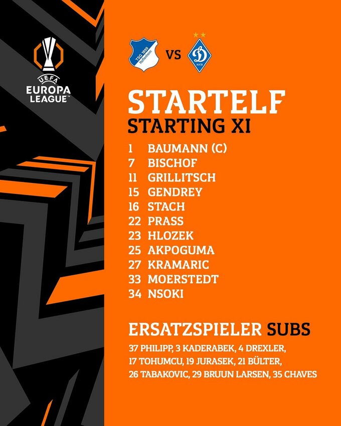 У поєдинку в німецькому місті Зінсхайм зіграють «Хоффенхайм» та «Динамо» Київ.