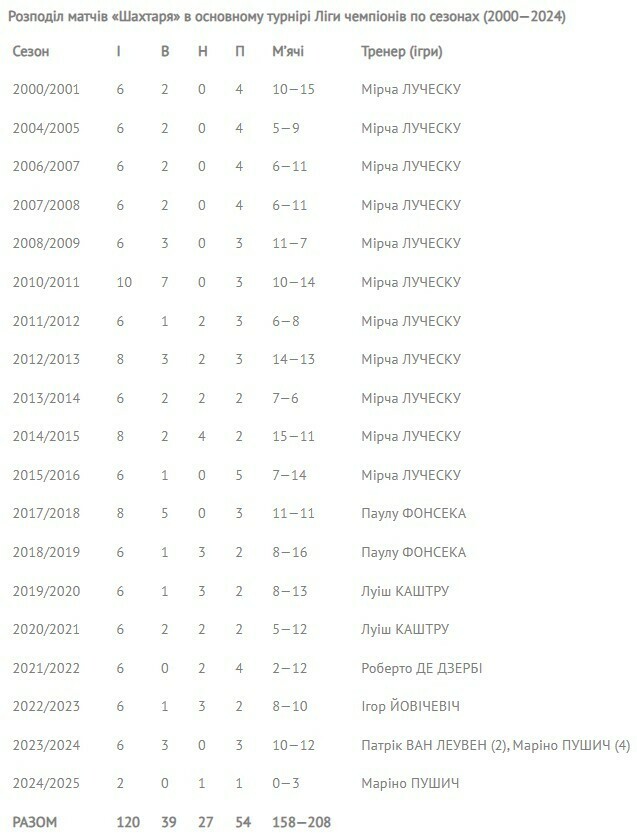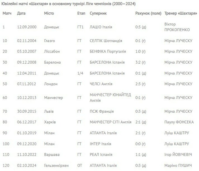 Гра проти «Аталанти» стала для «Шахтаря» ювілейною, 120-ю, в основному турнірі Ліги чемпіонів.