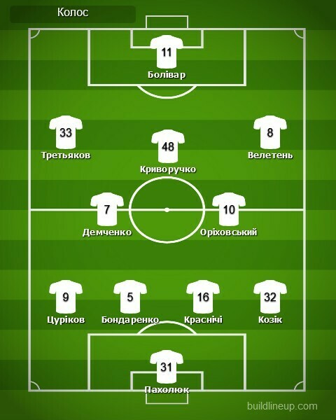 «Колос»: Пахолюк, Цуріков, Краснічі, Бондаренко, Козік, Оріховський (Салабай, 68), Демченко, Криворучко (Гагнідзе, 46), Велетень (Гусол, 79), Третьяков, Болівар (Безбородько, 68)