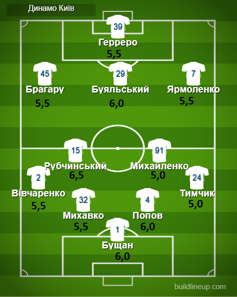 Заміни Динамо: Кабаєв – 5,0, Шапаренко – 5,0, Андрієвський, Волошин, Брагару – без оцінок.