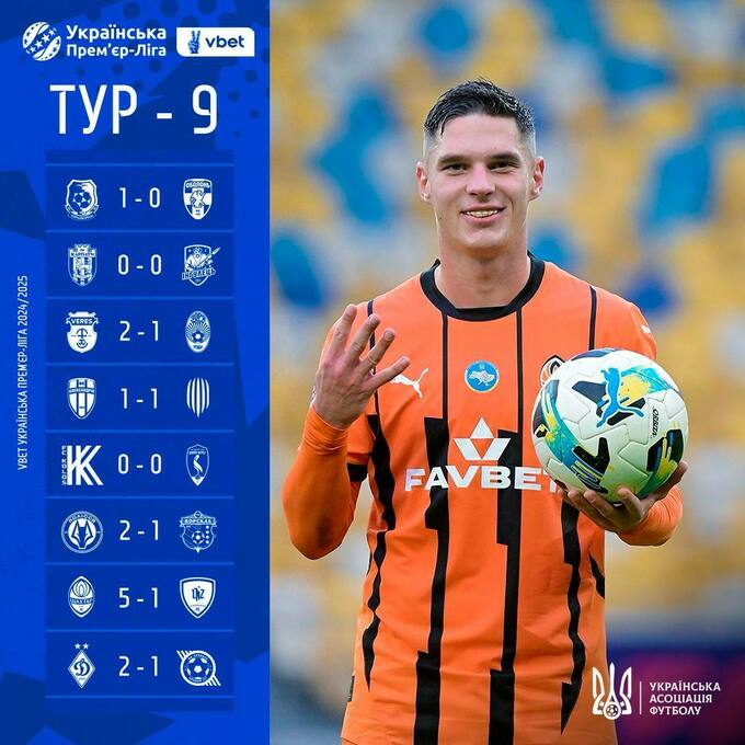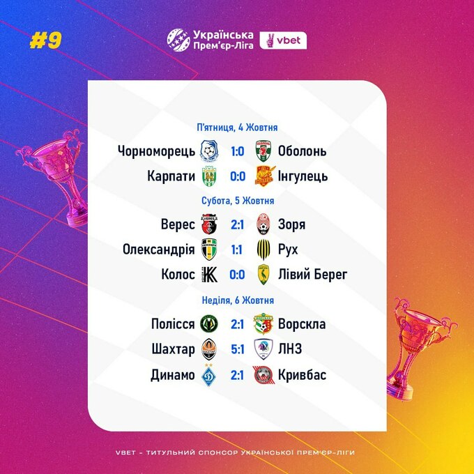 З 4 по 6 жовтня пройшли матчі 9-го туру Української Прем'єр-ліги 2024/25