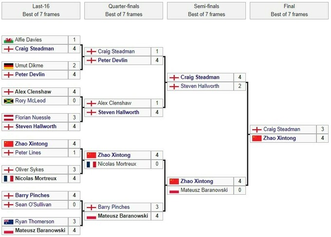 Переможцем турніру у Стокгольмі став китаєць Чжао Сіньтун, колишній профі-гравець та переможець двох рейтингових турнірів. Він у фіналі переміг Крейга Стедмана з Англії (4:3).