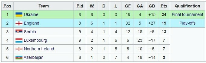 Синьо-жовті здобули 8 перемог у 8 матчах та практично оформили путівку до фінального турніру. Ще 9 учасників визначаться за підсумками жовтневих поєдинків групового етапу, а троє – у матчах плей-оф 11–19 листопада. Формування пар стикового етапу заплановано на 17 жовтня.