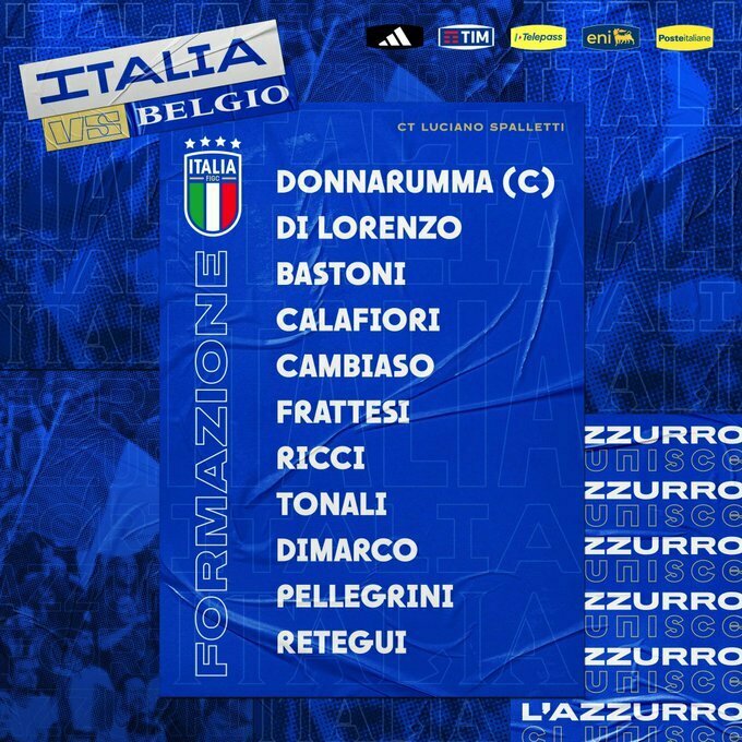 Італія: Доннарумма – Калафіорі, Бастоні, Ді Лоренцо – Дімарко (Удоджі, 70), Тоналі (Пізіллі, 80), Річчі (Фаджолі, 70), Фраттезі (Белланова, 90), Камб'язо – Пеллегріні – Ретегі (Распадорі, 80).