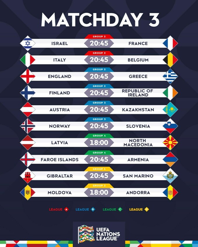 Увечері 10 жовтня відбуваються поєдинки 3-го туру Ліги націй.
