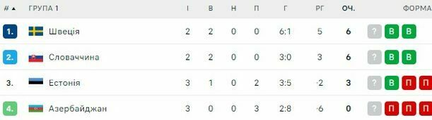 Становище в групі С1: Швеція, Словаччина (по 6 очок), Естонія (3), Азербаджан (0).