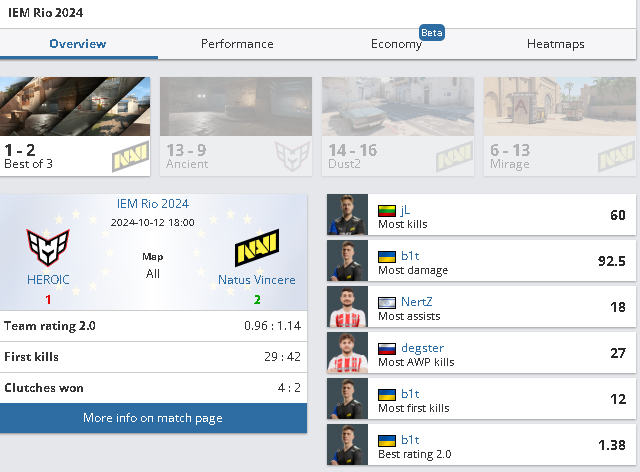 HEROIC мали відчуття, що серія була у них в кишені, особливо після того, як вони повели 9:3 на Dust2, але не змогли утримати свою перевагу. У вирішальній карті Mirage NAVI були на голову вищими за суперників у всіх аспектах гри. Але варто віддати належне HEROIC за достойну гру проти команди, яка наразі займає перше місце у світовому рейтингу.