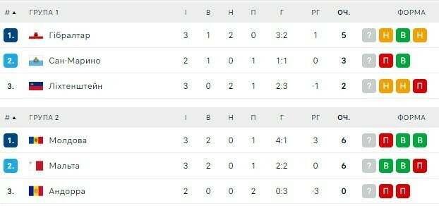 Мальта та Молдова набрали по 6 очок, Андорра йде без набраних балів.