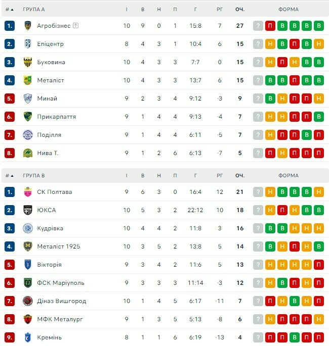 Турнірна таблиця