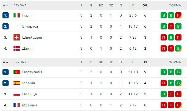 Раніше були визначені всі 4 володарі путівок на ЧС від Європи: Іспанія, Португалія, Італія та білорусь.