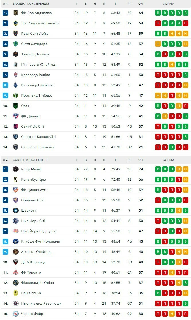 У Північній Америці завершився регулярний чемпіонат MLS-2024.