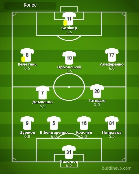 «Колос»: Пахолюк, Цуріков, В.Бондаренко, Краснічі, Поправка, Демченко, Гагнідзе, Оріховський (Салабай, 68), Велетень (Дієго, 75), Алефіренко (Третьяков, 68), Болівар (Безбородько, 75)