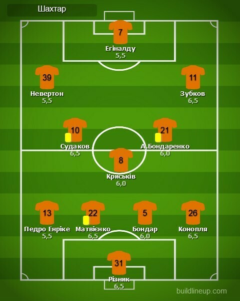 «Шахтар»: Різник, Конопля, Педро Енріке, Бондар, Матвієнко, Криськів, Судаков, Зубков (Марлон, 87), А.Бондаренко, Егіналду (Кевін, 46), Невертон (Сікан, 46)