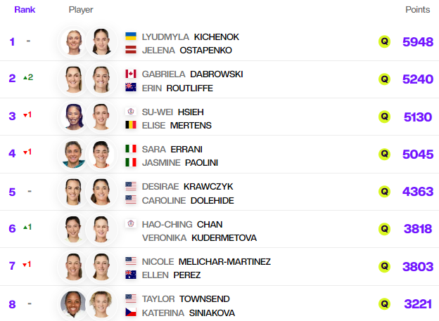 Визначено всі тандеми, які виступатимуть на Підсумковому турнірі WTA 2024 у парному розряді.