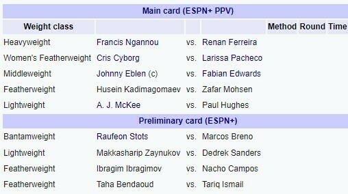 Вага Ренана Феррейри – 118,6 кг, вага Франсіса Нганну – 116,5 кг.