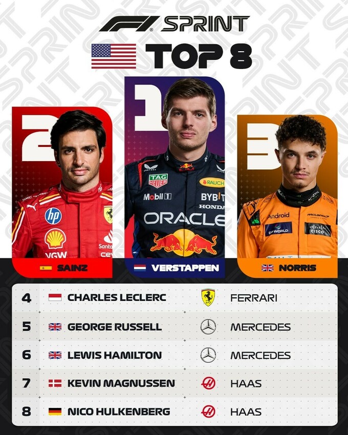 Відбулися спринтерські перегони в рамках Гран-прі США. Перемогу та вісім очок здобув пілот Ред Булла Макс Ферстаппен, який стартував з поулу та виграв заїзд Ф-1 вперше з червня.