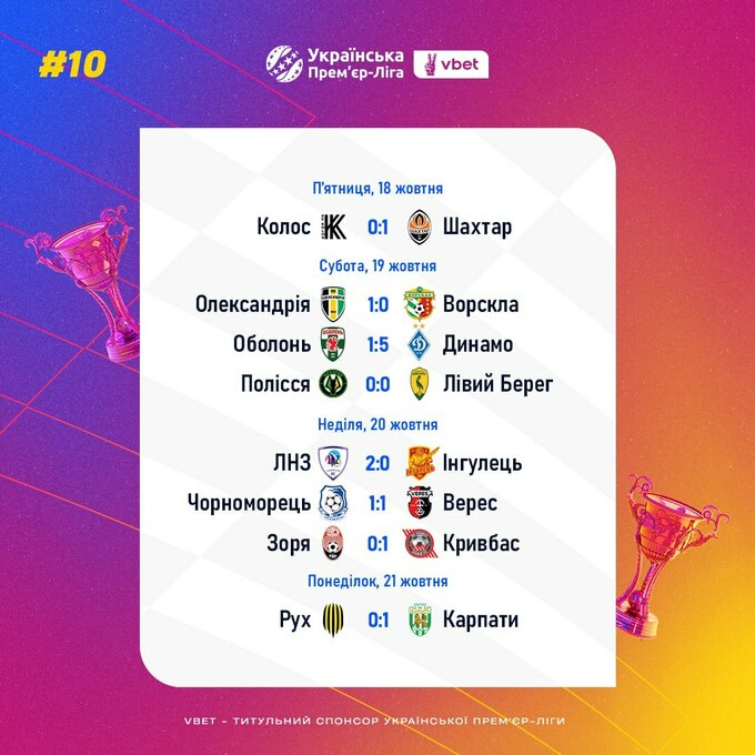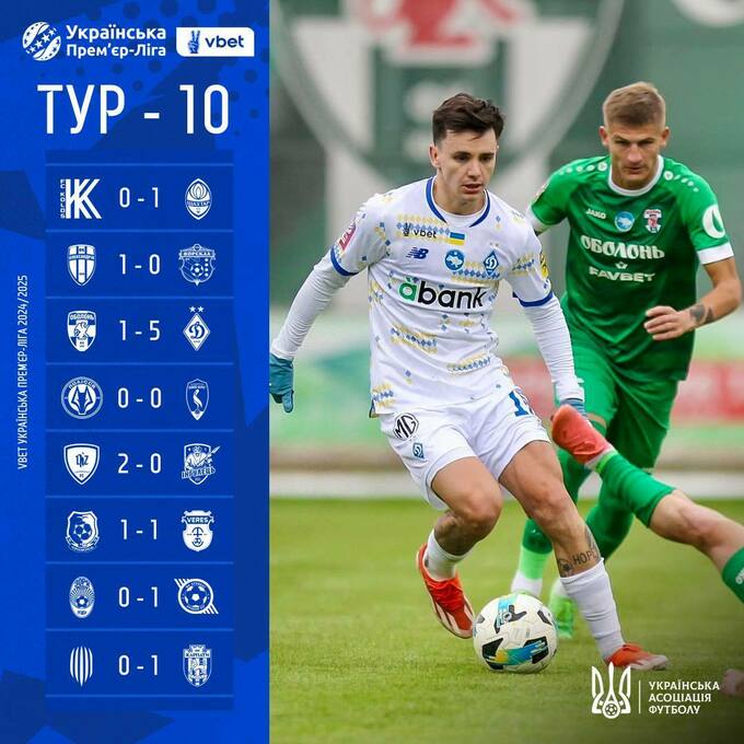 З 18 по 21 жовтня пройшли матчі 10-го туру Української Прем'єр-ліги 2024/25.