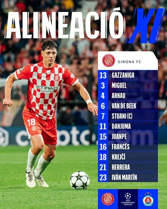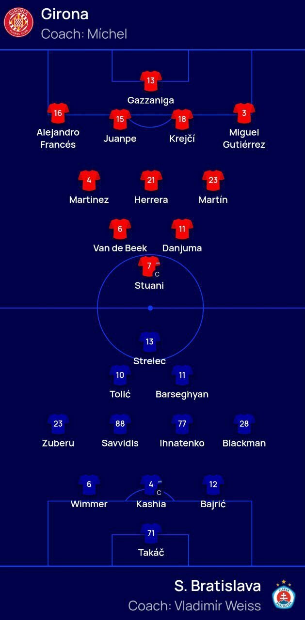 Жирона – Слован Братислава. Дивитись онлайн. LIVE трансляціяСтартові склади на матч Жирона – Слован: