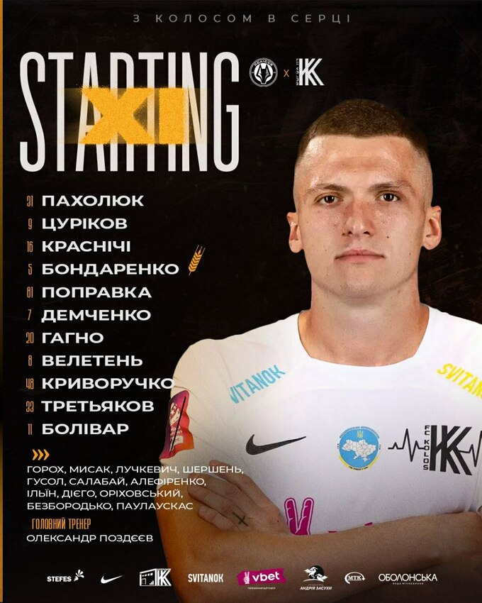 Запасні: Горох, Мисак, Лучкевич, Шершень, Салабай, Ільїн, Дієго, Безбородько.
