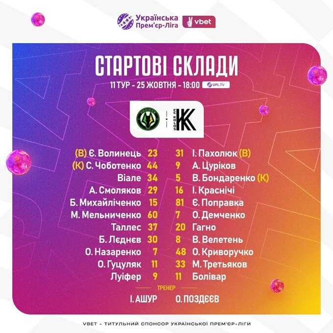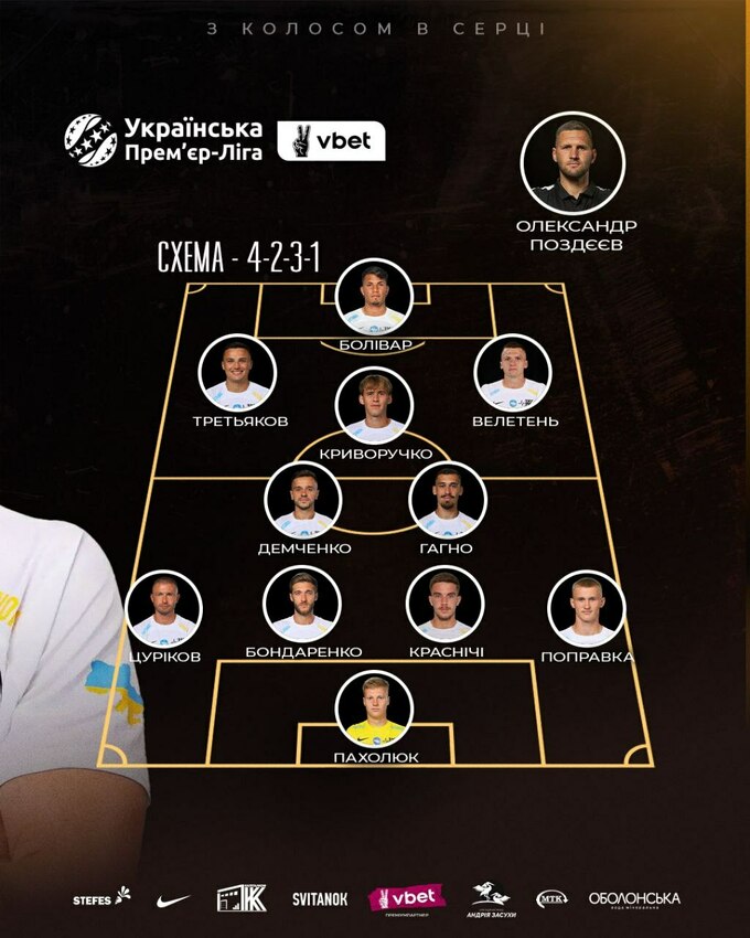 Запасні: Кудрик, Сунцов, Брістрич, Шастал, Корж, Майсурадзе, Матіч.
