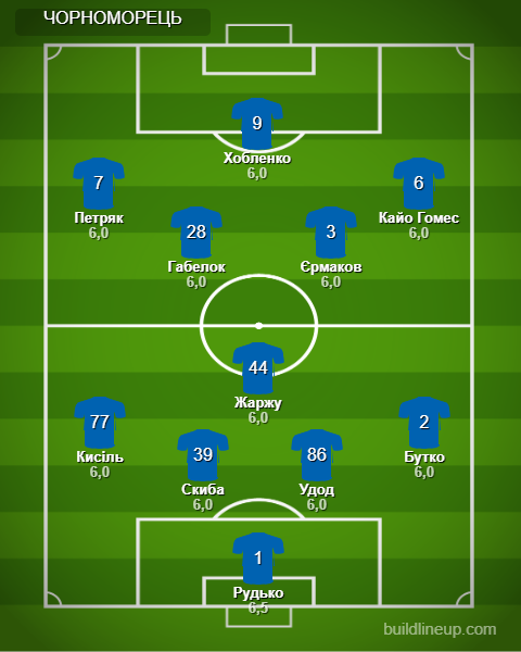 «Чорноморець»: Рудько, Бутко, Удод, Скиба, Кисіль, Жаржу (Білошевський, 60), Єрмаков (Лацабідзе, 60), Габелок (Шпорн, 60), Кайо Гомес (Янаков, 67), Петряк (Попов, 74), Хобленко.