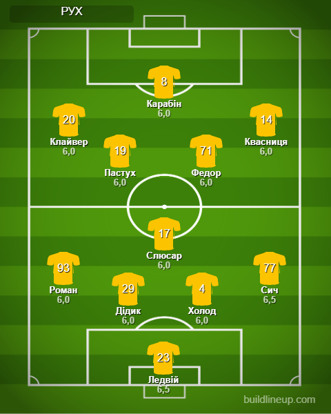 Заміни «Руху»: Краснопір – 6,0, Климчук – 6,0, Притула – 6,0, Підгурський – 6,0.