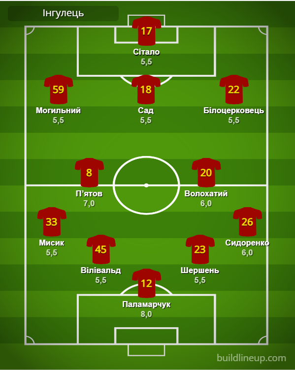 «Інгулець» (заміни): Пушкарьов – 6,0, Козиренко – 6,0, Резепов – б/о, Кисленко – б/о, Лісняк – б/о.