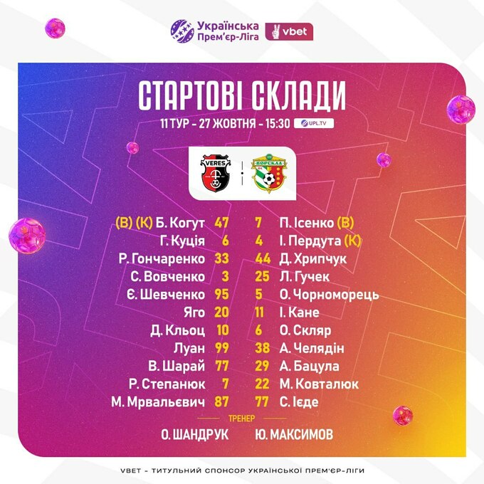 У неділю, 27 жовтня, о 15:30 відбудеться поєдинок 11-го туру Української Прем'єр-ліги.