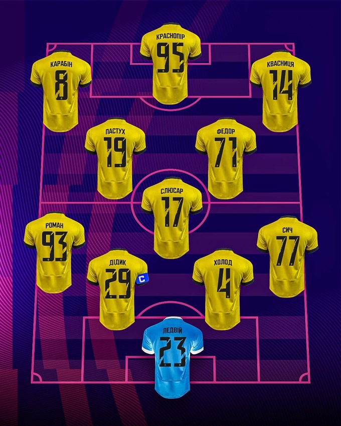Запасні: Кінарейкін, Підлепенець, Тлумак, Кузик, Полегенько, Саків.