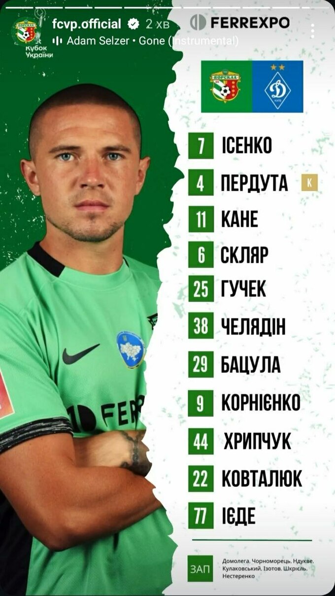 Ворскла: Ісенко, Пердута, Кане, Скляр, Гучек, Челядін, Бацула, Корнієнко, Хрипчук, Ковталюк, Ієде.