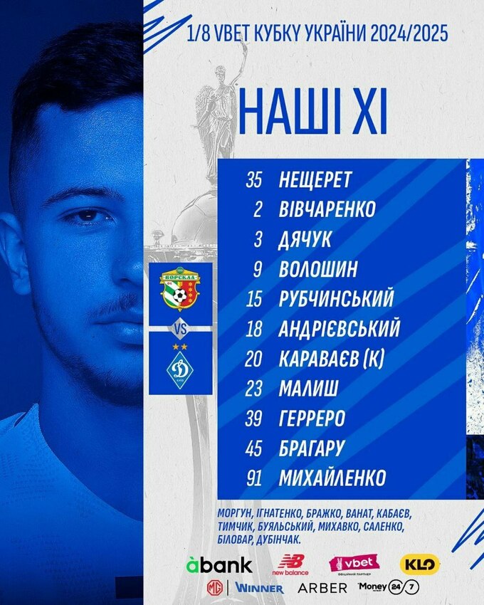 Динамо: Нещерет, Вівчаренко, Дячук, Волошин, Рубчинський, Андрієвський, Караваєв, Малиш, Герреро, Брагару, Михайленко.