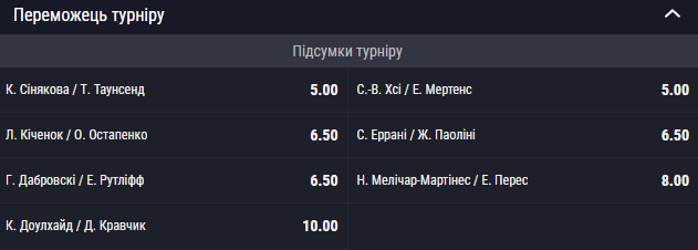 Хто виграє трофей WTA Finals у парному розряді? Думка букмекерів: