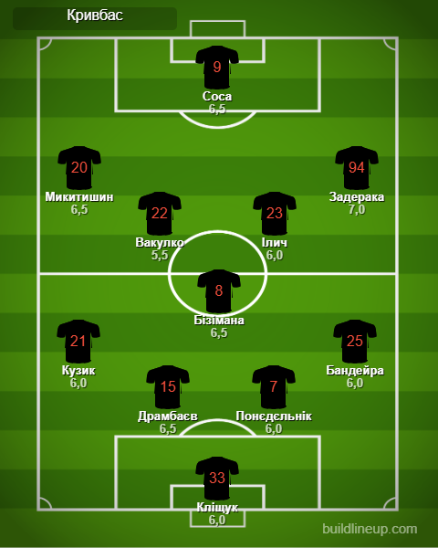 «Кривбас»: Кліщук – Д. Кузик, Драмбаєв, Понєдєльнік, Бандейра – Бізімана – Микитишин (Кожушко, 70), Вакулко (Твердохліб, 56), Ілич, Задерака – Соса.