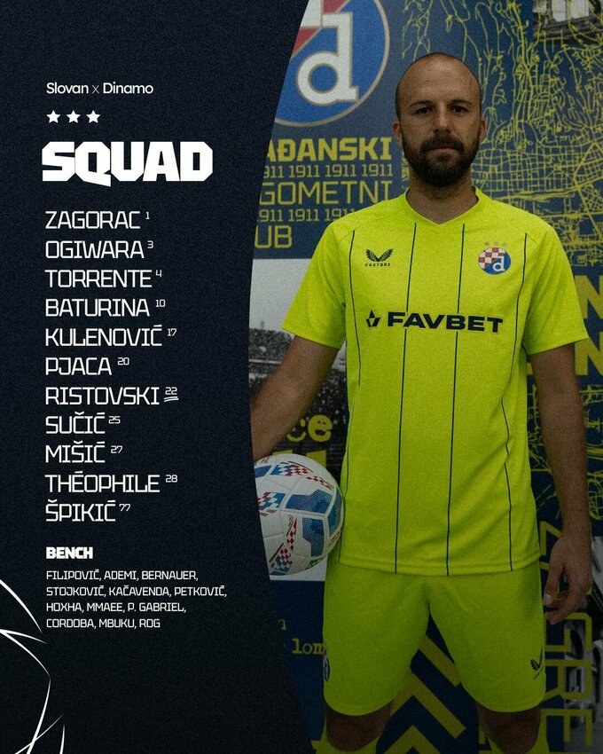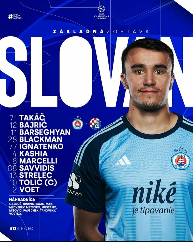 Стартові склади на матч ЛЧ Слован Братислава – Динамо Загреб