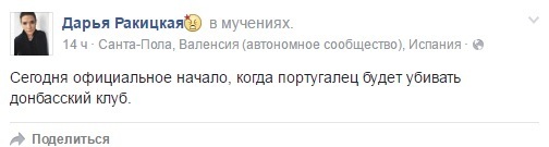 «Сьогодні офіційний початок, коли португалець вбиватиме донбаський клуб», – написала дівчина 17 липня 2016 року – в день, коли Ракіцький не потрапив у заявку «Шахтаря» на матч Суперкубка України проти «Динамо», а «помаранчево-чорні» програли трофей у серії пенальті (1:1, 3:4).