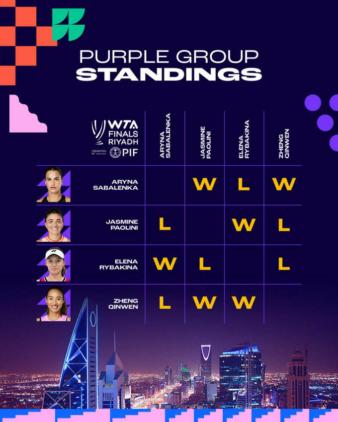 Хто вийшов у півфінал? Підсумкова таблиця Фіолетової групи WTA Finals 2024