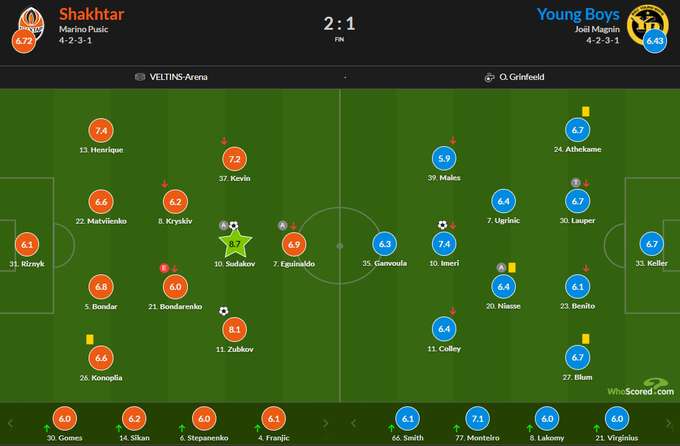 Оцінки WhoScored за матч Шахтар – Янг Бойз (2:1)
