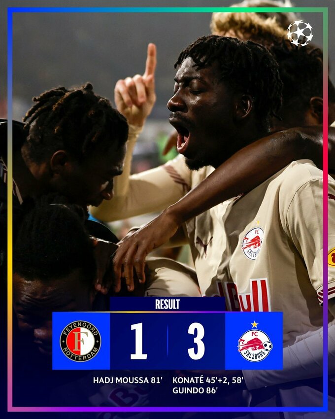 22:00. Фейєнорд (Нідерланди) – РБ Зальцбург (Австрія) – 1:3