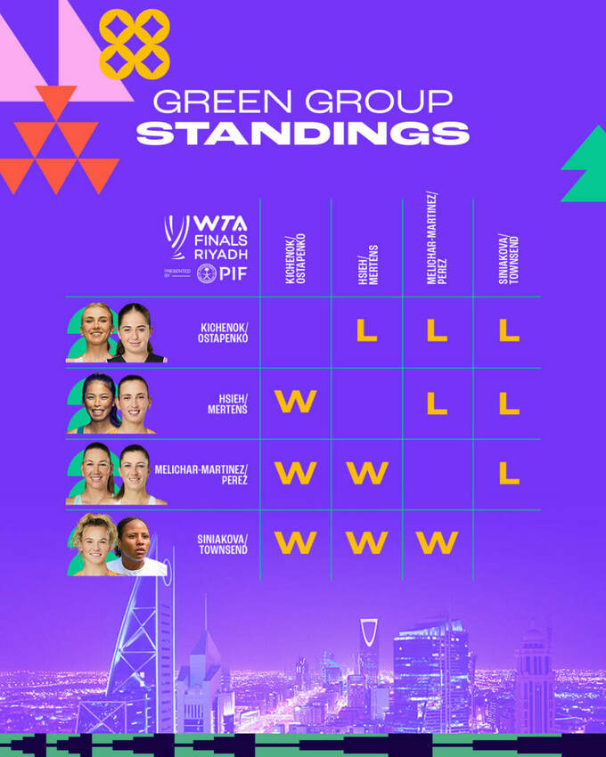 6 листопада відбулися матчі 3-го туру парного розряду у Зеленій групі на Підсумковому турнірі WTA 2024, який проводиться в Ер-Ріяді.