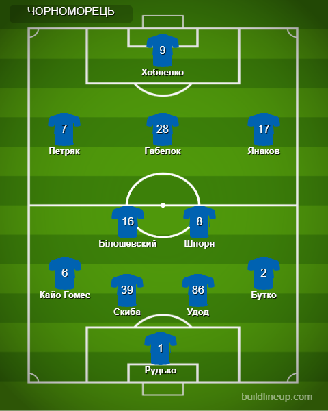 «Чорноморець»: Рудько – Бутко, Удод, Скиба, Білошевський (Кисіль, 88), Шпорн (Єрмаков, 78), Габелок (Лацабідзе, 46), Янаков, Петряк, Хобленко (Попов, 46), Кайо Гомес (Сігеєв, 88).