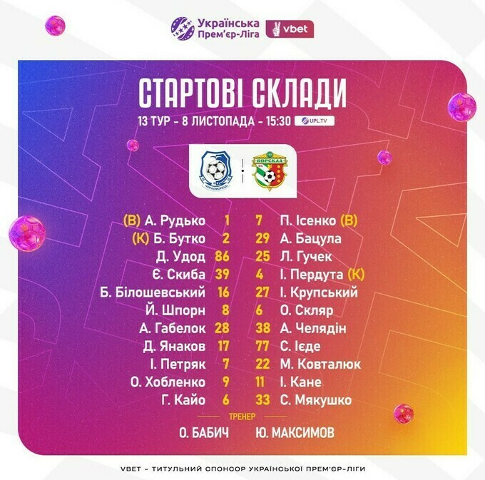 Запасні: Аніагбосо, Вічний, Жаржу, Васильєв, Пшеничнюк, Шевцов, Арсіч.