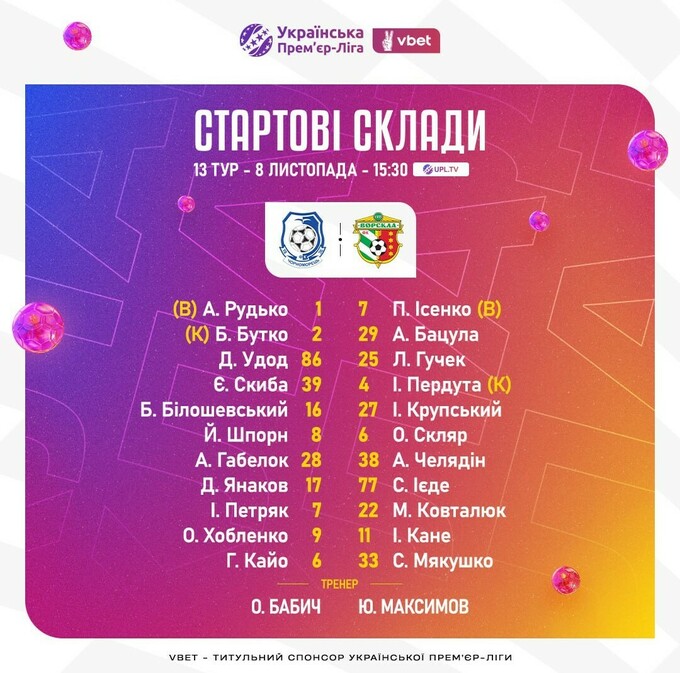 Стартові склади на матч «Чорноморець» – «Ворскла»:
