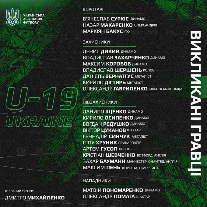 Головний тренер юнацької збірної України U-19 Дмитро Михайленко оголосив список гравців, які з 13 по 19 листопада братимуть участь у кваліфікаційному раунді Євро-2025.