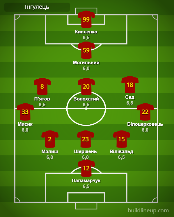 «Інгулець» (заміни): Резепов – 6,0, Лісняк – 6,0, Пушкарьов – б/о, Лосенко – б/о.