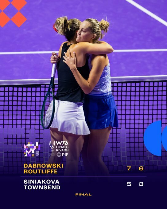 Gabriela Dabrowski and @erinroutliffe go undefeated as they beat Siniakova/Townsend 7-5, 6-3 to lift the trophy!#WTAFinalsRiyadh pic.twitter.com/9GJsG443Ab