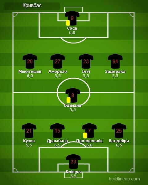 Заміни «Кривбаса»: Ндомбазі – 5,0; Твердохліб – 6,5; Кожушко – б/о; Каменський – б/о.