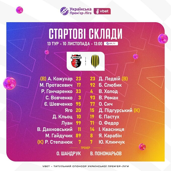 У неділю, 10 листопада, о 13:00 відбудеться матч 13-го туру Української Прем'єр-ліги.